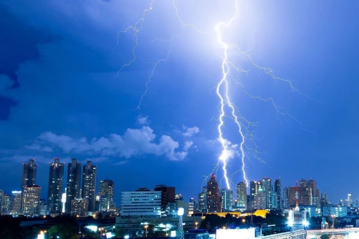 雷電也稱為閃電,是發(fā)生在大氣中的一種長(zhǎng)距離、強(qiáng)電流、強(qiáng)電磁輻射自然現(xiàn)象。
