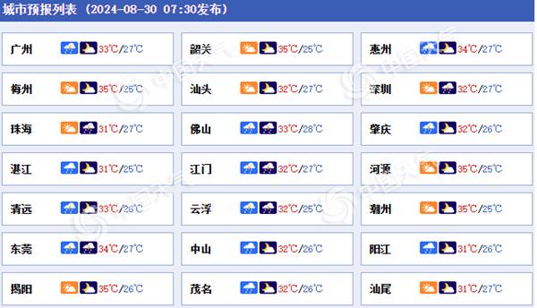 根據(jù)預(yù)報(bào),未來三天,廣東仍有雷雨來擾,部分地區(qū)將有高溫天氣,體感炎熱。具體來看,今明天,珠江三角洲南部和粵西市縣多云間陰天,有中雷雨,局部大雨或暴雨,其余市縣多云,有分散(雷)陣雨。粵西市縣最高氣溫30°C~33°C,其余市縣普遍介于33°C~35°C,部分市縣36°C~37°C。